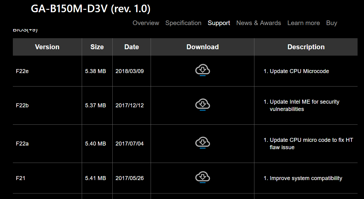 문득 이런 구형 PC도 bios 업그레이드가 있나 검색해 보다 아래와 같이 새버젼 (F22a, F22b, F22e)가 나와있는것을 발견하고 문제가 시작되었다.